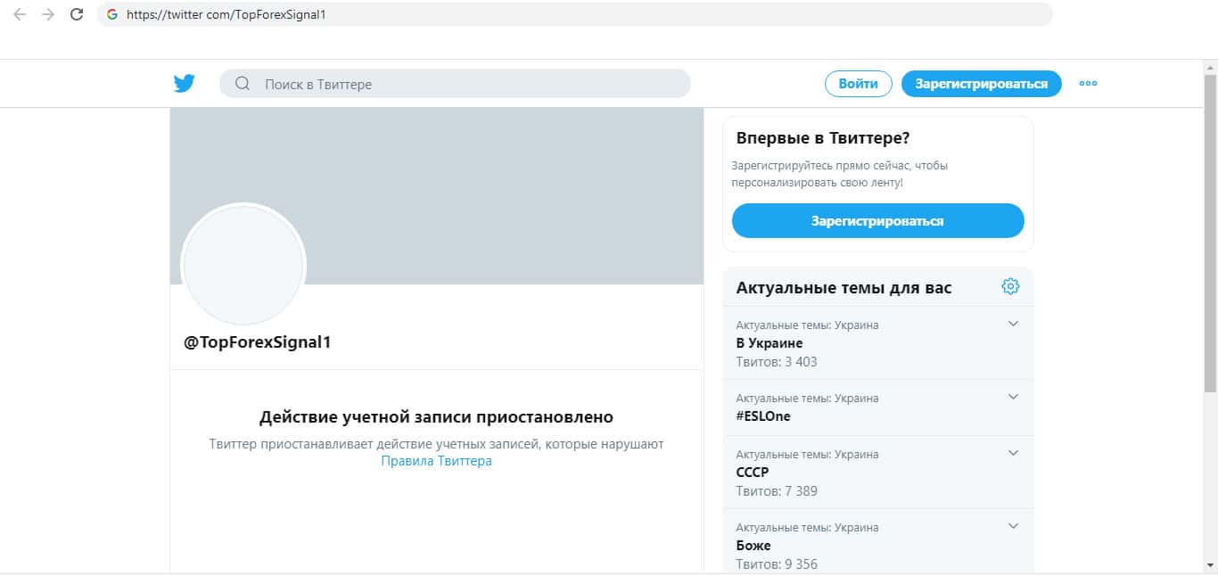 А вот интересная история приключилась со страницей в твитере, которая принадлежит, точнее принадлежала аферистам 1000PipBuilder Com. Ссылка на главном сайте компании есть на эту социальную сеть, но вот только страница удалена по непонятным причинам. Возможно компанию увлекли в мошенничестве и фирме пришлось удалить аккаунт.
