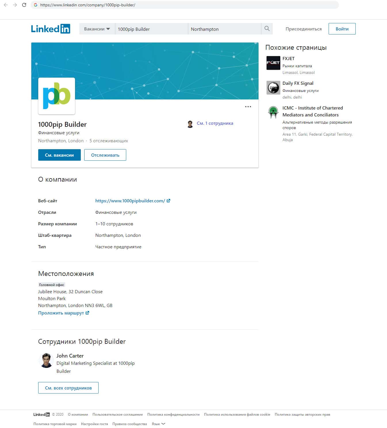 Информация о руководстве компании жуликов 1000 Пип Буилдер