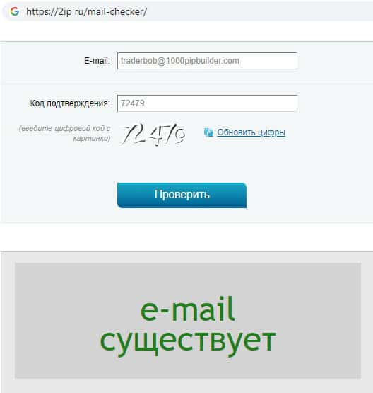 Мы проверили существование адреса электронной почты мошеннической конторы 1000PipBuilder Com. Адрес активен, и работает в данный момент, жуликам можно написать в любое время, точнее купить у них подписку, минимум за 97 долларов, а получат клиенты просто фальшивые сигналы, и ответственность на них будет так же на пользователях.