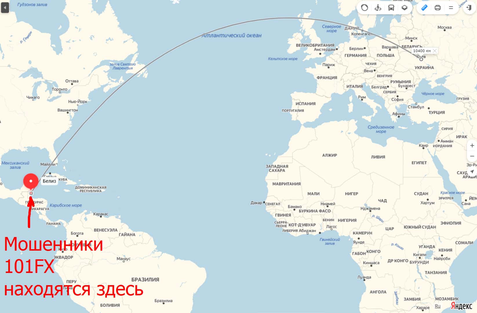 Дополнительным преимуществом для лохотрона 101 ФХ является факт их оффшорной регистрации, а именно: Barrier Reef Drive, San Pedro Town, Ambergris Caye, Belize Central America, что дает шулерам 101FX анонимность их счетов и владельцев. К тому же все суды пользователей с жульем 101 ФХ будут происходить на территории оффшора.