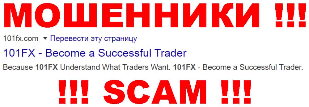 101 ФХ - очередные мошенники сети интернет, которые занимаются наглым разводом наивных пользователей сети интернет под довольно банальным предлогом торговли форекс, в ходе которой жулики 101FX оперативно кидают на деньги свою доверчивую клиентуру. В связи с этим иметь дело и сотрудничать с аферистами 101 ФХ определенно не рекомендуем !!!