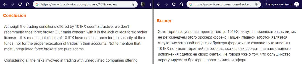 И ввиду разбора деятельности мошенников 101 ФХ веб-площадка форексброкерз ком не рекомендует иметь дело с лохотроном 101FX так как он создан исключительно для развода на деньги наивных пользователей сети интернет. На изображении, расположенном ниже, вы можете наглядно увидеть выводы веб-площадки форексброкерз ком об аферистах 101 ФХ.