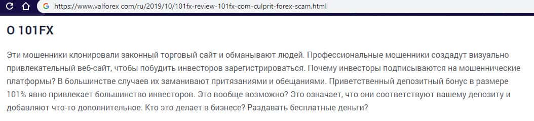 - Статья о мошенниках 101 ФХ с веб-площадки valforex com