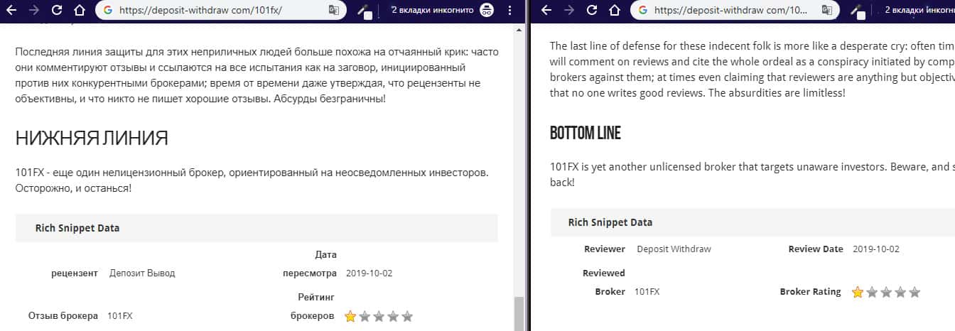 - Негативная статья о лохотроне 101 ФХ с веб-сайта deposit-withdraw com