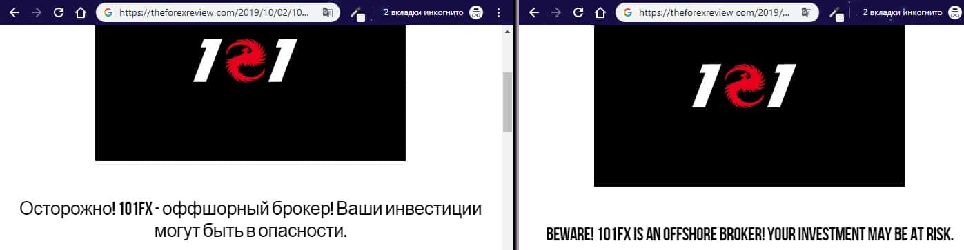 - Портал theforexreview com не рекомендует иметь дело с аферистами 101 ФХ