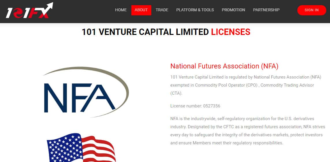 Под лицензию аферисты 101 ФХ отвели отдельный раздел, в котором указали довольно сомнительную информацию относительно своей лицензии и регулировании, не предоставляя никаких ссылок, что говорит о том, что мошенники 101FX сделали это исключительно для виду, а сами попросту осуществляют свою деятельность без какого-либо регулирования или лицензии.