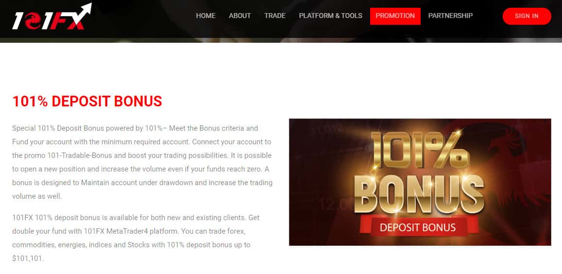 Дабы привлечь побольше наивных пользователей аферисты 101 ФХ сделали начальный депозит довольно низким, а именно от десяти долларов. Но помимо этого лохотрон 101FX предлагает удвоение данного депозита, что говорит о том, что шулера 101 ФХ реально подкручивают котировки и никакой торговли у них не происходит, а деньги сразу идут в карманы жулья.