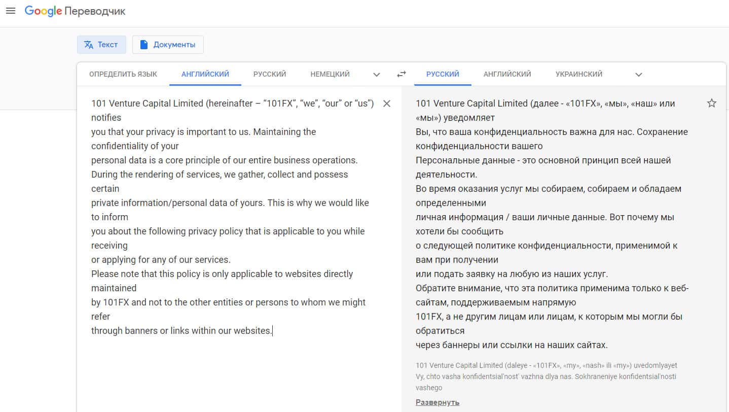 Политика конфиденциальности у мошенников 101FX начинается с довольно стандартной информации о том, что это за документ и зачем он нужен, которая толком не несет в себе никакой информационной нагрузки и добавлена исключительно для виду. На изображении, расположенном ниже, вы можете увидеть начало политики конфиденциальности жулья 101 ФХ.