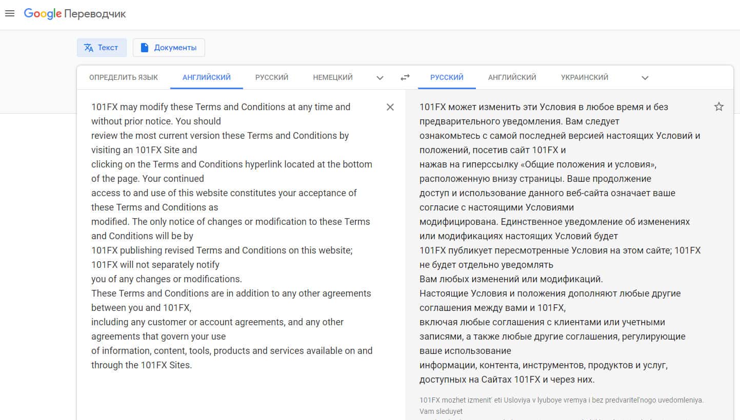 Далее в своих сомнительных условиях жулье 101FX говорит о том, что они могут в любой момент по своему личному усмотрению изменить данные условия сотрудничества без предварительного уведомления наивных пользователей сети интернет. На изображении, расположенном ниже, вы можете наглядно увидеть следующий раздел условий сотрудничества аферистов.