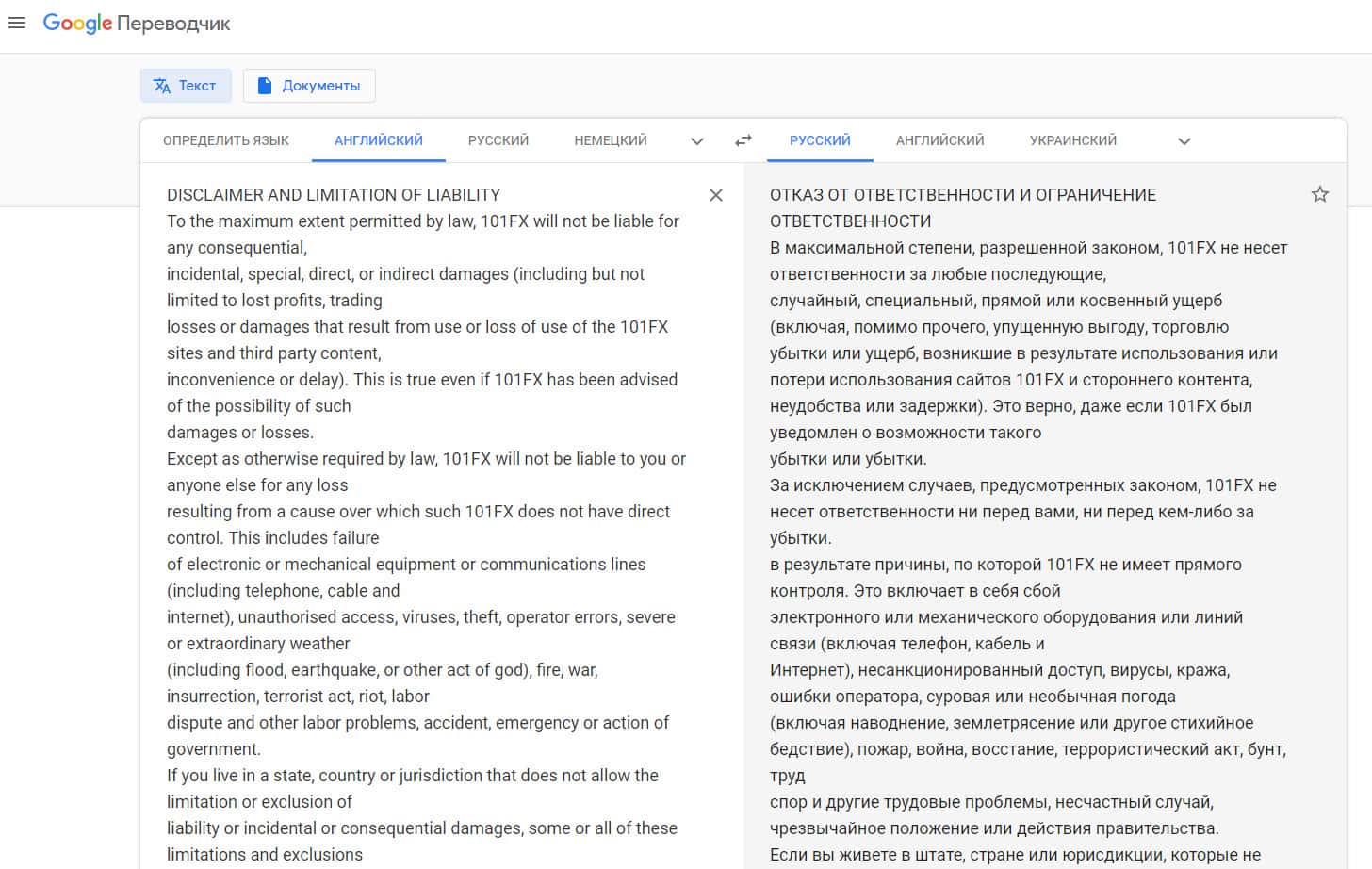 После в политике конфиденциальности проходимцев 101FX следует информация о том, что аферисты 101 ФХ отказываются от ответственности за все потери наивных пользователей сети интернет, связанные с деятельностью мошенников 101FX и их подвального сайта. На изображении, расположенном ниже, вы можете наглядно увидеть отказ от ответственности жулья 101 ФХ.