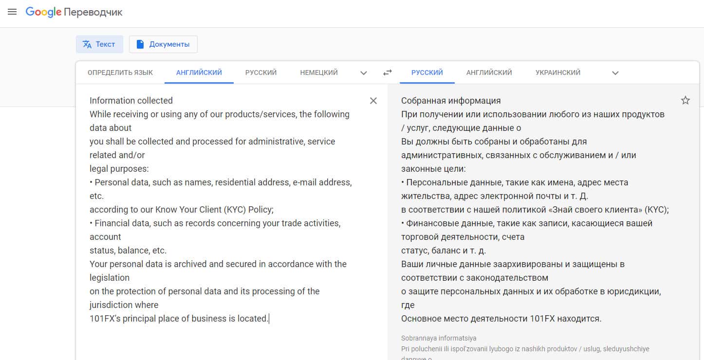 Далее в политике конфиденциальности у аферистов 101 ФХ следует довольно сомнительный перечень информации, которую собирают мошенники 101FX с наивных пользователей сети интернет под предлогом верификации на их подвальном сайте. На изображении, расположенном ниже, вы можете наглядно увидеть данный раздел политики.