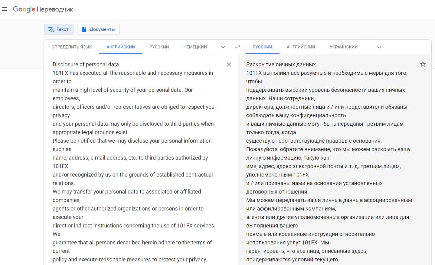 После в политике конфиденциальности у аферистов 101FX следует условие о том, что жулики могут в любой момент по своему личному и персональному усмотрению передавать личные данные и информацию наивных пользователей сети третьим лицам. На изображении, расположенном ниже, вы можете наглядно увидеть очередной раздел политики мошенников.