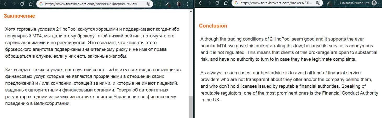 В связи с мошеннической и противозаконной деятельностью аферистов 21 INC Pool, в результате которой наивная клиентура теряет деньги, несмотря на крайне низкую популярность лохотрона 21 ИНК Пул о них пишут различные источники сети интернет например как портал форексброкерз ком, который не рекомендует связываться с мошенниками 21 INC Pool.