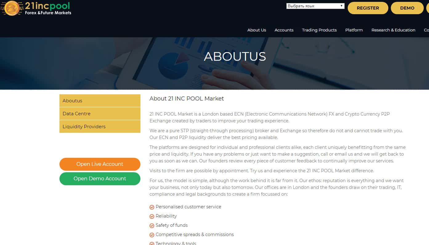 - Условий сотрудничества или же политики конфиденциальности лохотрон 21 ИНК Пул не предоставляет
