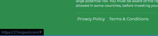 Ввиду своей подвальности и мошеннического умысла шулера 21 INC Pool не предоставляют клиентского соглашения или же политики конфиденциальности, что говорит об определенной халтуре с их стороны, или же просто их нежелании знакомить наивных пользователей со своими условиями сотрудничества ввиду противозаконных действий.