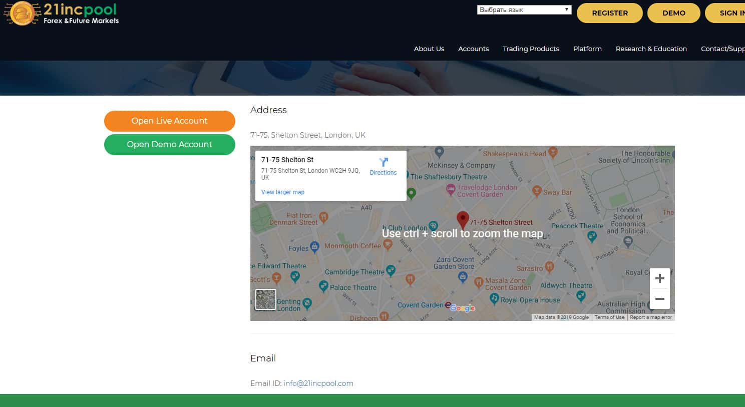 Условий сотрудничества или же политики конфиденциальности лохотрон 21 ИНК Пул не предоставляет