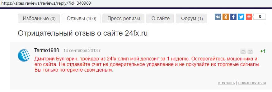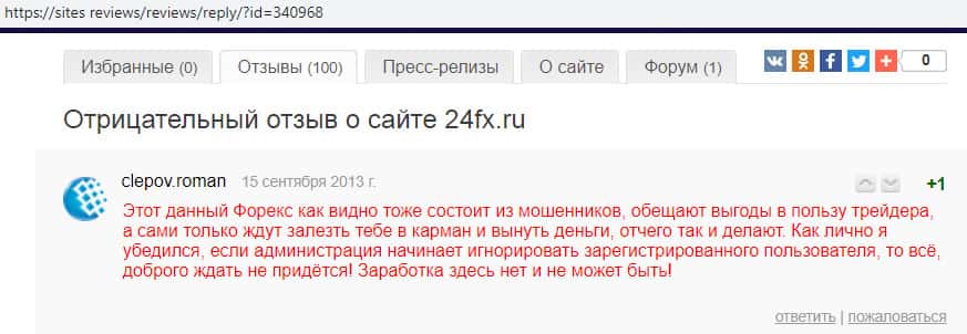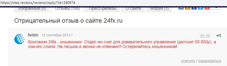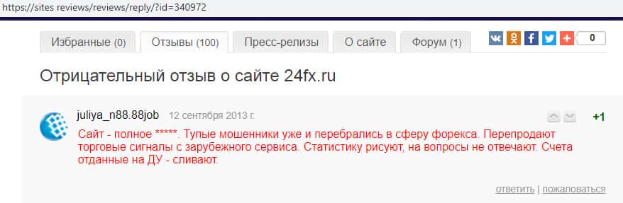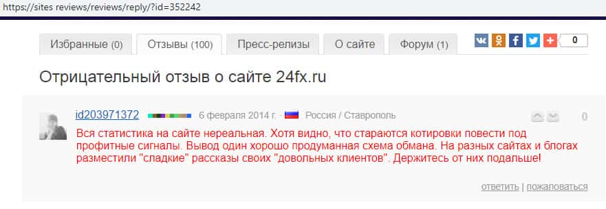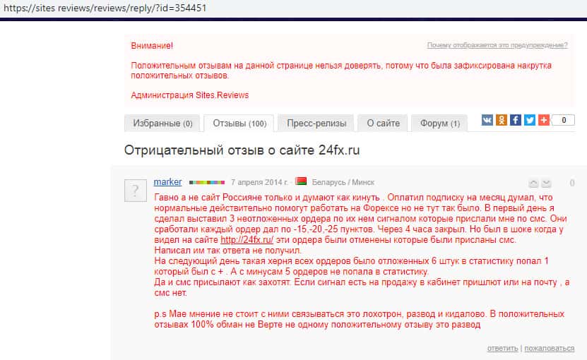 Негатив в сторону лохотрона 24 ФХ сигналы с веб-площадки ситес ревьюс