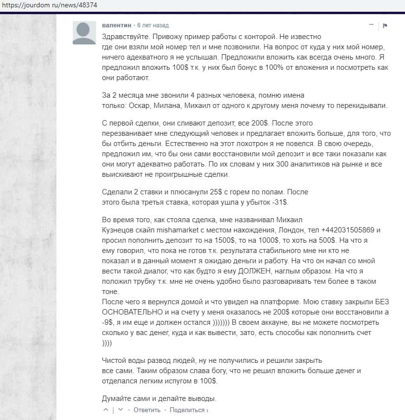 Еще один клиент не рекомендует иметь дело с проходимцами 24 ФХ сигналы