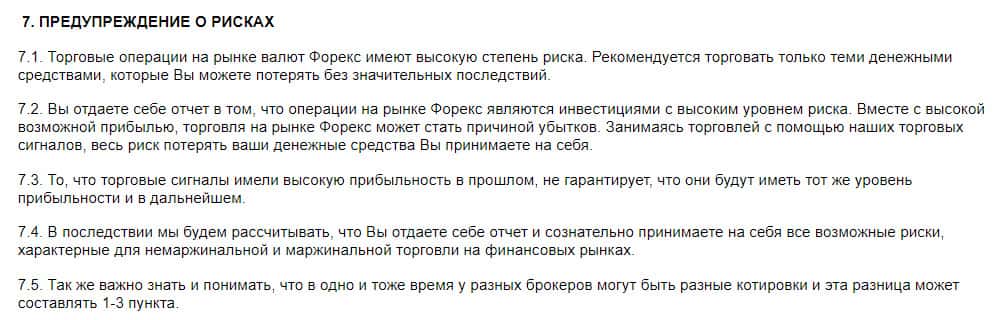 После в условиях клиентского соглашения аферистов 24FX Ru следует условие о том, что пользователи соглашаются со всеми условиями мошенников 24 ФХ сигналы во время передачи проходимцам 24FX Ru денежных средств, тем самым деньги попросту сливаются в руки шулерам 24 ФХ сигналы. На изображении ниже вы можете наглядно увидеть данный раздел.