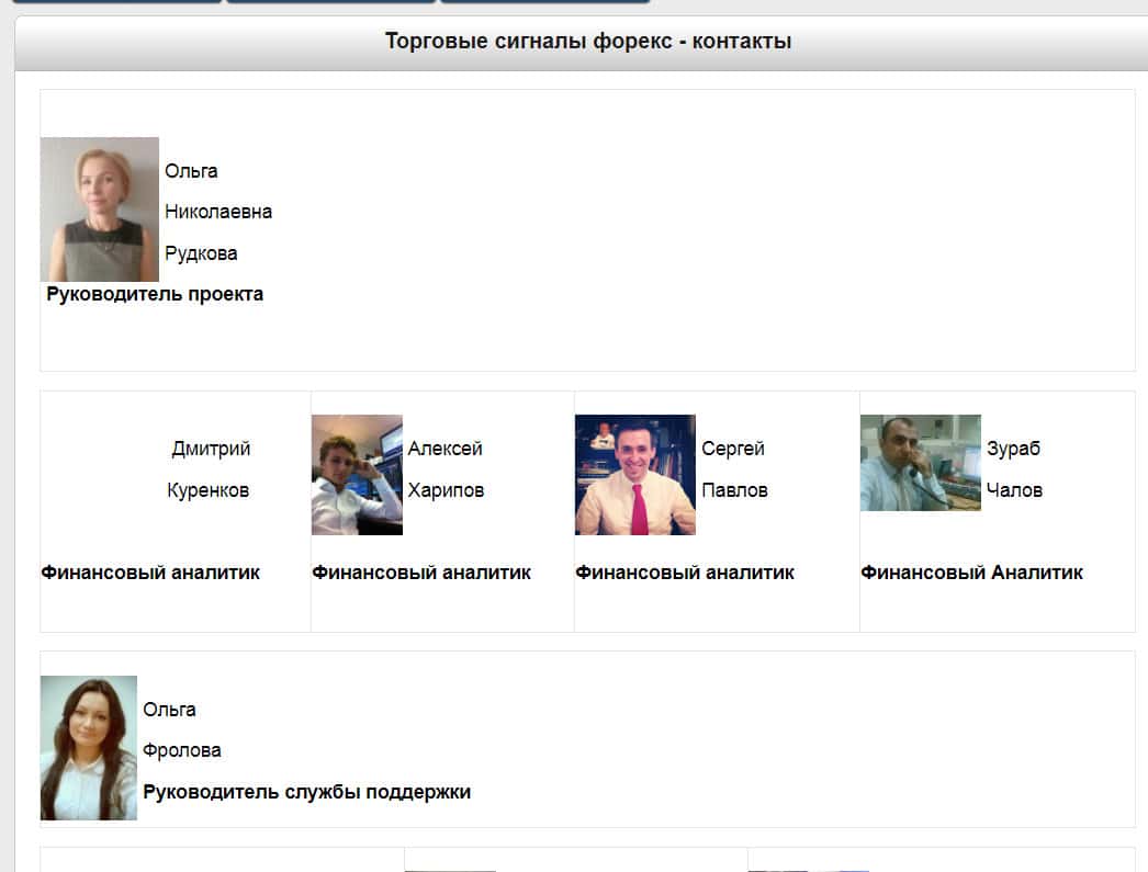 Под своих руководителей аферисты 24 ФХ сигналы отвели отдельный раздел своего сайта, где перечислили довольно малую для такого перечня услуг команду, которая якобы и занимается непосредственно предоставлением услуг по регистрации оффшорных брокеров. Итак ниже перечислим указанных на подвальном сайте проходимцев 24FX Ru личностей: