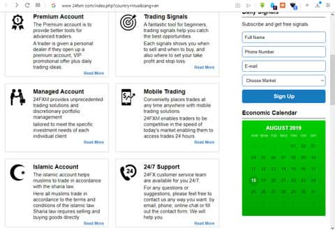 Обзор на главную страницу сервиса 24 FXMПреимущества компании 24 FXM