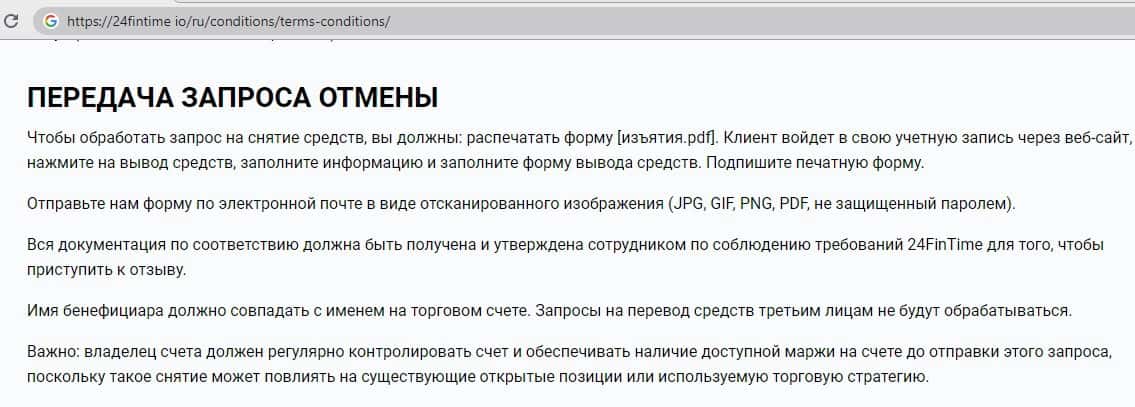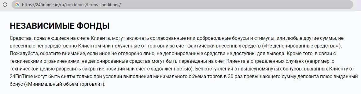 Следуя логике данной политики лохотрона 24 Фин Тайм вывести средства которые вы вложили и средства которые вы заработали на финансовом рынке будет не возможно.