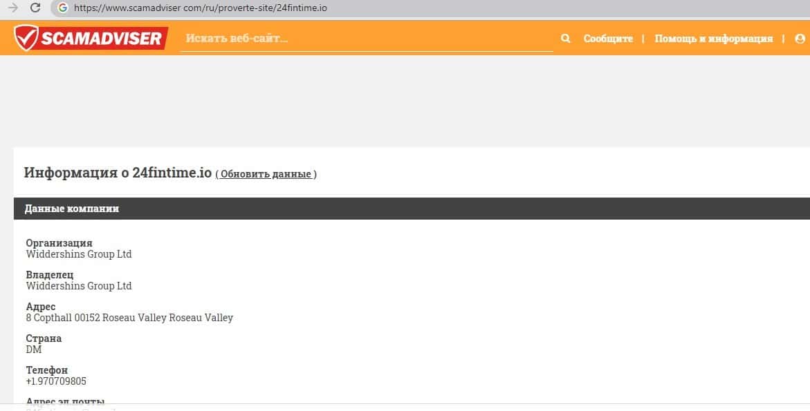 - Данные о лохотроне 24 Фине Тайм с портала скамадвайзер