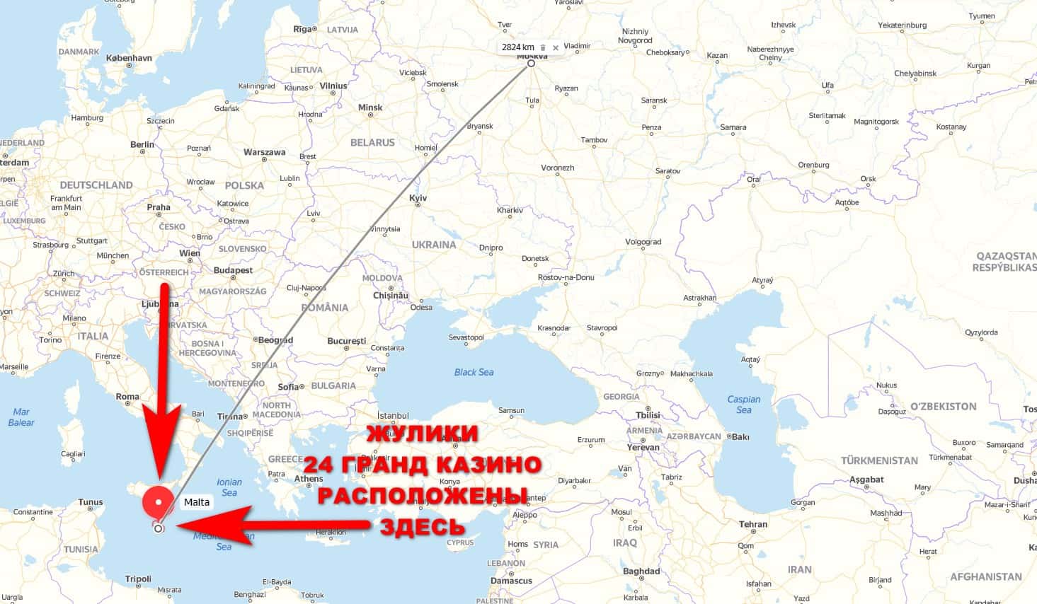 Исходя из официальных данных недоказино 24 Гранд Казино, мошенники расположены на территории острова Мальта, который является оффшорным государством.