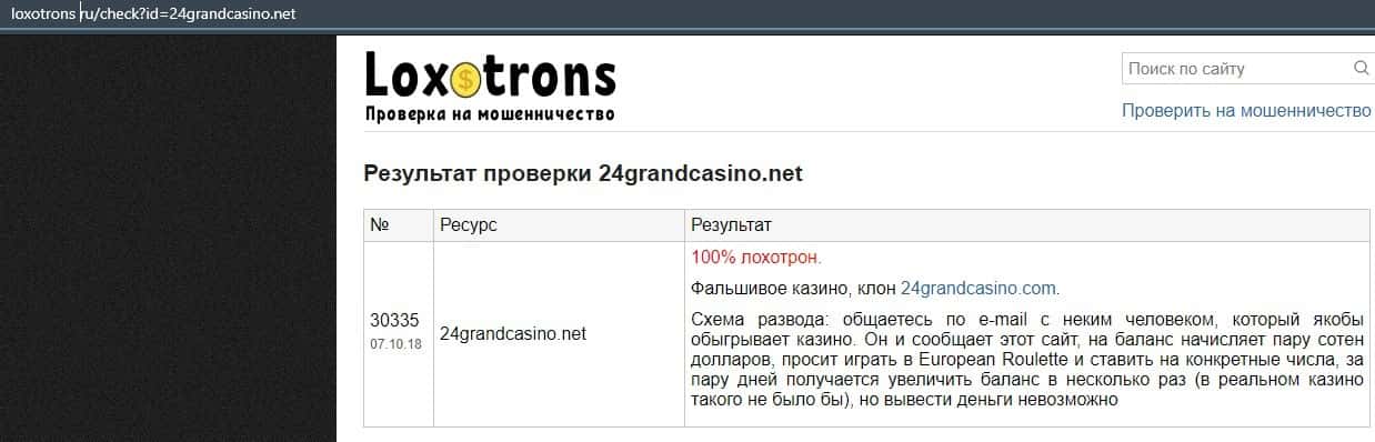 В данной публикации четко дают понять, что 24 Гранд Казино - это стопроцентный лохотрон, а также фальшивое казино, которое является клоном похожей интернет-шараги.