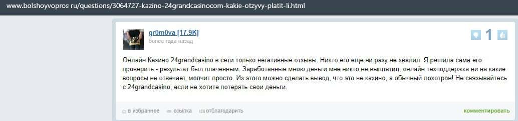 Еще один пользователь сети удивляется, что в интернете настолько много подобных контор как 24GrandCasino Net и все они обещают золотые горы. По факту же вы не получите ничего.