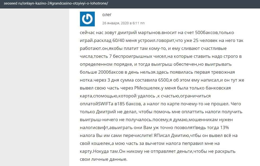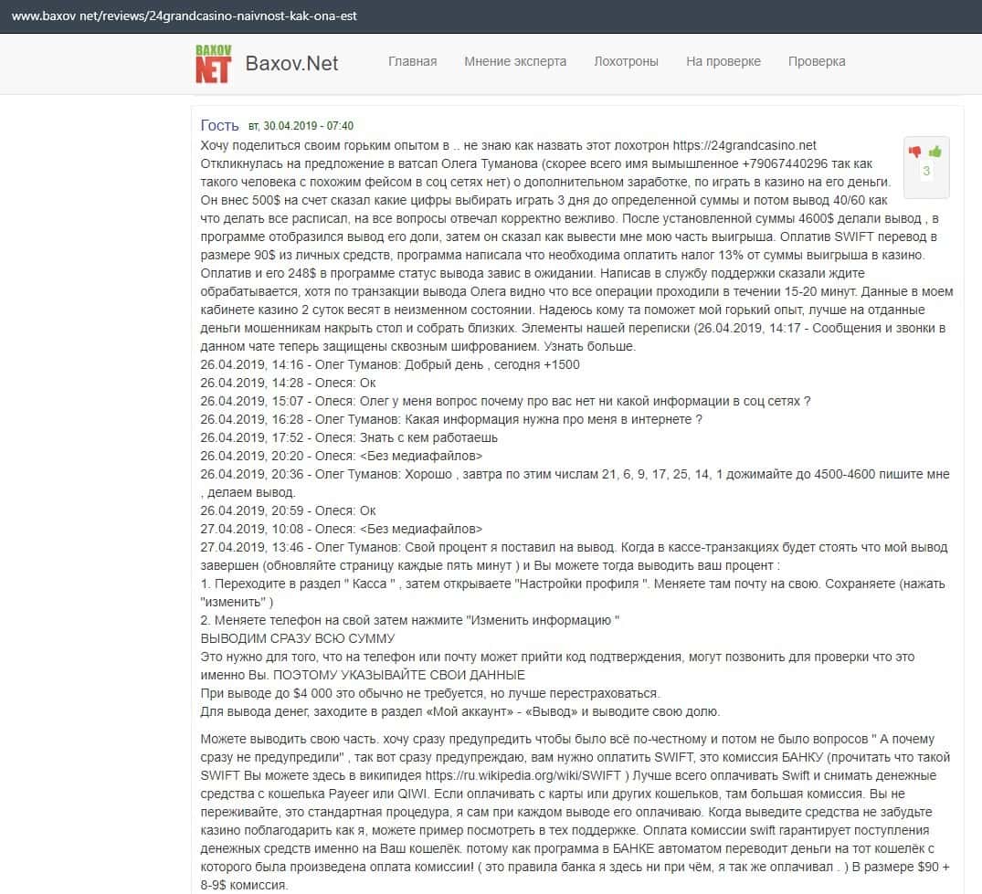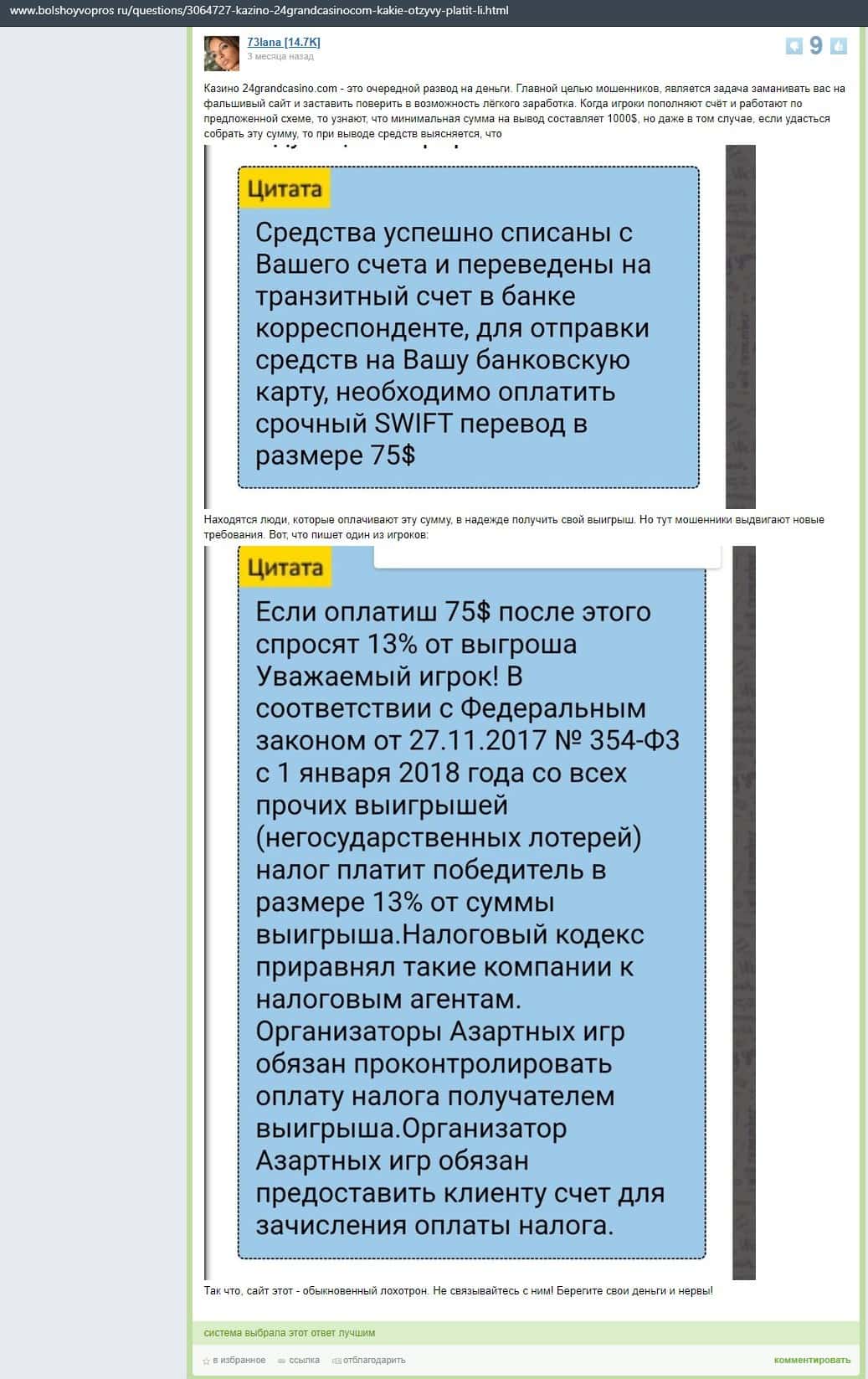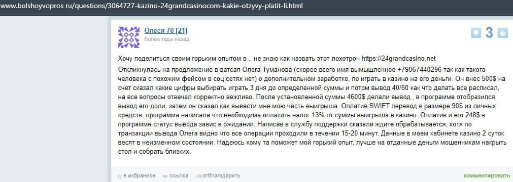 - Мошенники 24GrandCasino Net вымогают заплатить налог