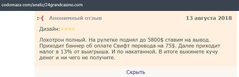 - Отзывы о шулерской конторе 24 Гранд Казино