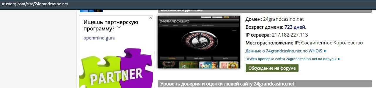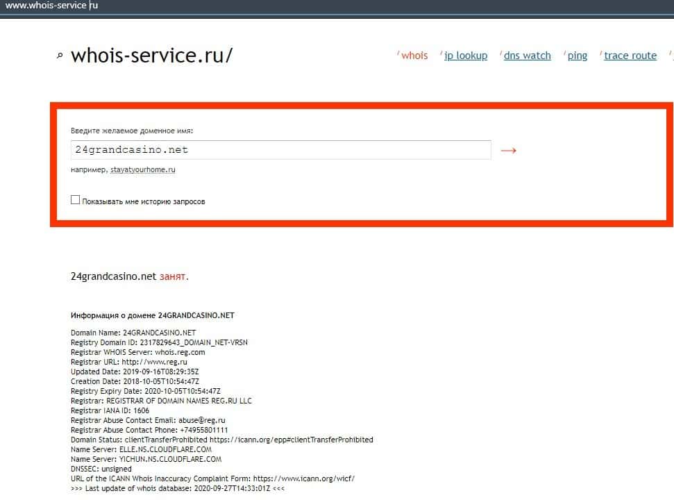 - Кто владеет доменом ресурса 24GrandCasino Net?