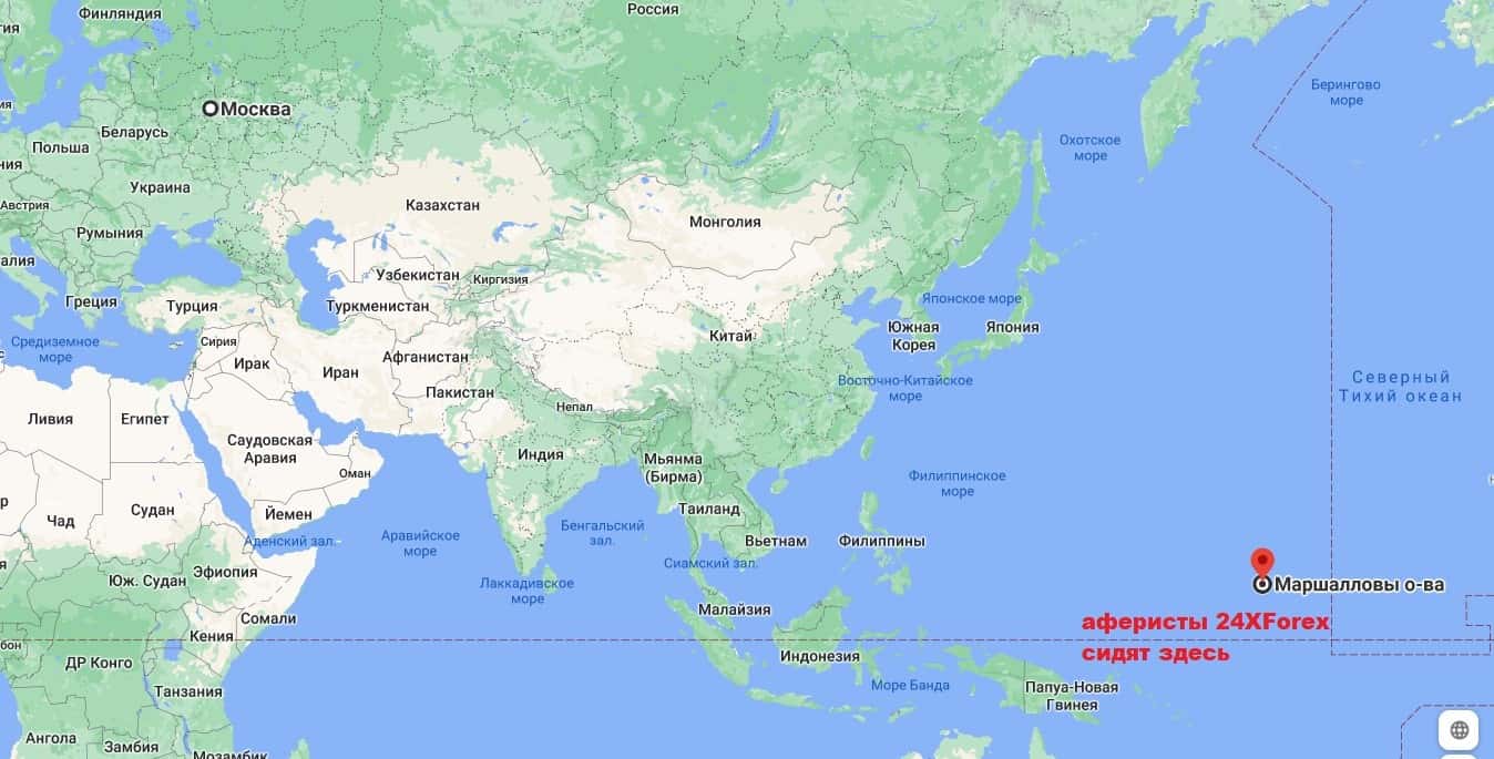 Аферисты 24 Х Форекс пишут, что обладают лицензией, выданной на Маршалловых островах, но это полнейшая ложь, никакого разрешения на торговлю у них нет.