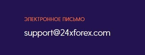 Также для связи с финансовой организацией 24 Х Форекс предлагается адрес электронной почты, который находится в разделе Контакты.