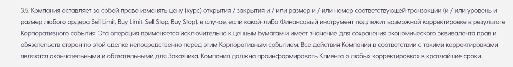 В пункте 3.5 мошенники 24 Х Форекс заявляют, что могут изменять цену, транзакцию и номер любой сделки клиента. По сути, они могут делать все, что угодно с его ордерами.