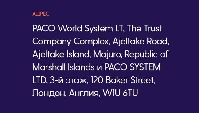 Аферисты указали на своем сайте, что их офис находится на Маршалловых островах, а, также, имеют представительство в Лондоне. Правда это или нет, проверить мы не можем.