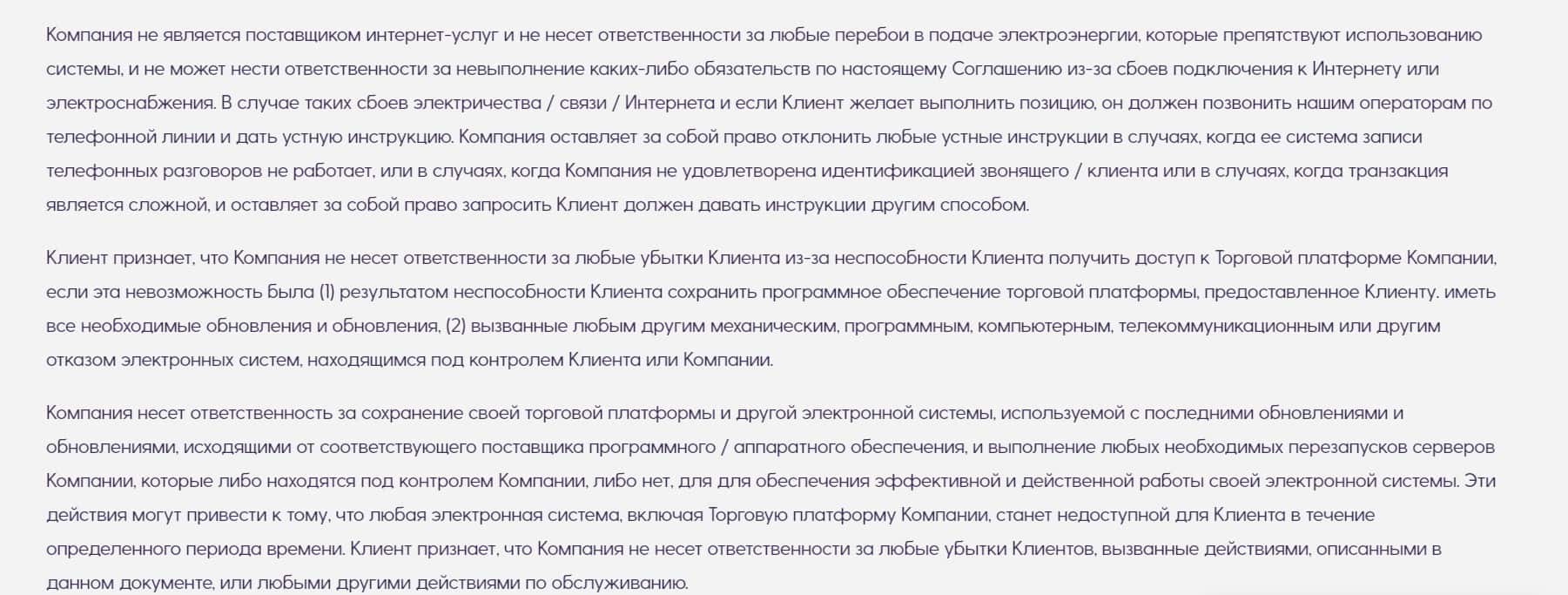 Администрация сайта 24XForex во втором пункте своего договора отказывается от ответственности за убытки клиента, возникшие из-за технических сбоев.