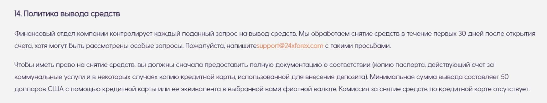 Политика вывода средств предусматривает обработку платежей до 30 дней, а также, предварительно клиент обязан предоставить все документы по запросу компании.