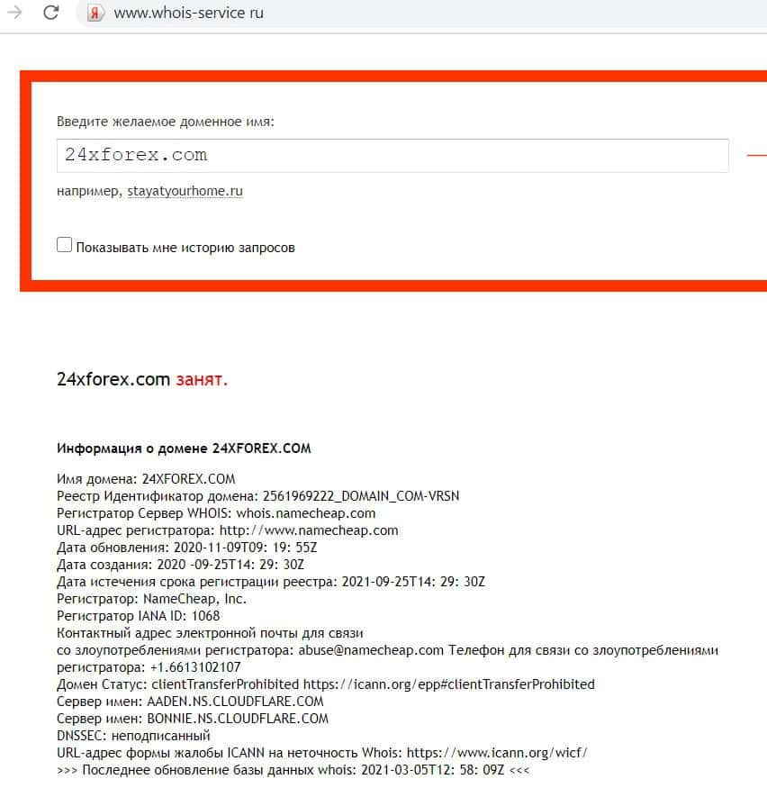 Кому принадлежит доменное имя сайта 24xforex com?