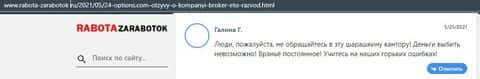 Ниже представлен еще один отзыв, который касается развода в конторе 24 Options. Мошенники занимаются вымогательством и в данном случае они развели клиента на деньги.