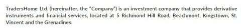Лохотронская организация 24 Опционс принадлежит некой компании под названием TradersHome Ltd, которая имеет регистрацию на территории Сент-Винсент и Гренадины.