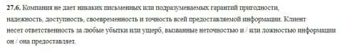Лохотронская организация 24 Опционс указывает в соглашении, что она не дает никаких гарантий своим клиентам касательно информации, которая размещена на их официальном сайте.