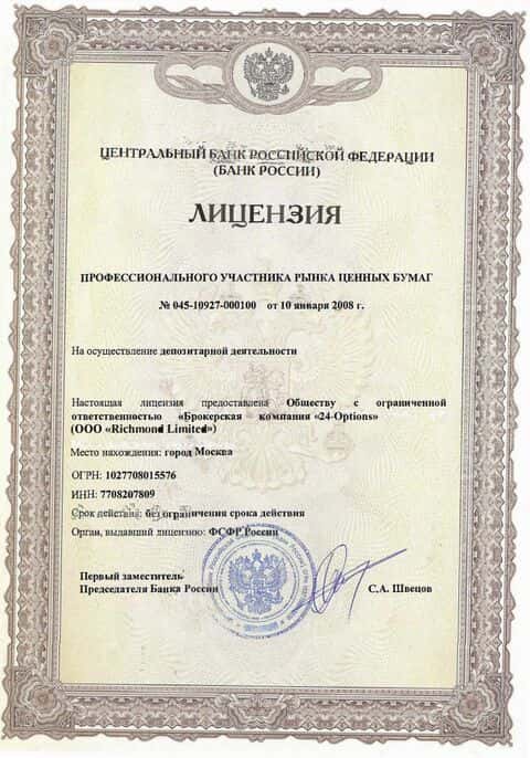Исходя из официальных данных контора 24 Options расположена на территории островного оффшора Сент-Винсент и Гренадины, что довольно далеко от столицы Российской Федерации.