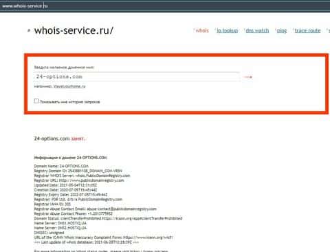 Кто владеет доменом портала 24-options com?
