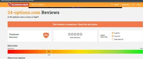 Что говорит сервис скамадвайзер ком о сайте 24-options com?