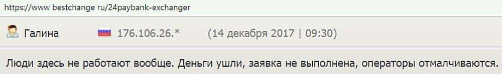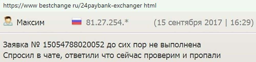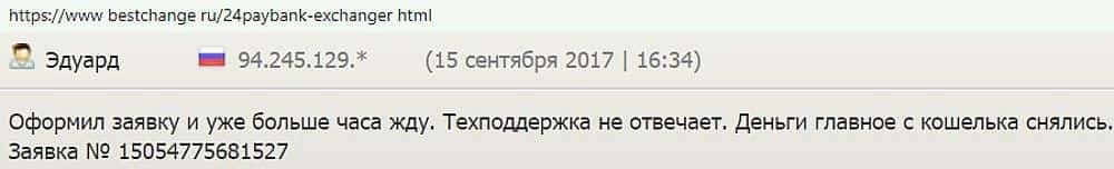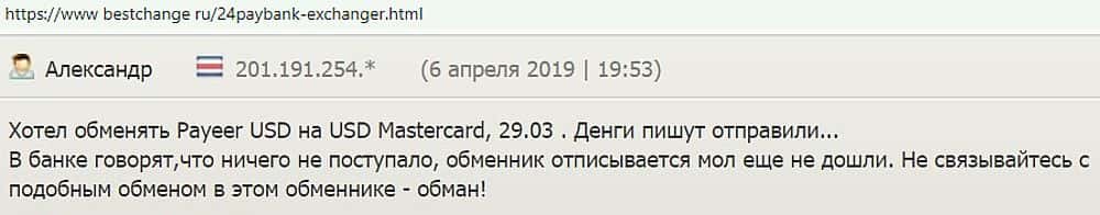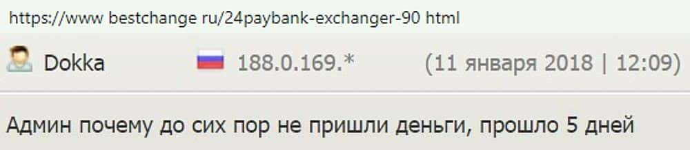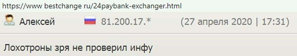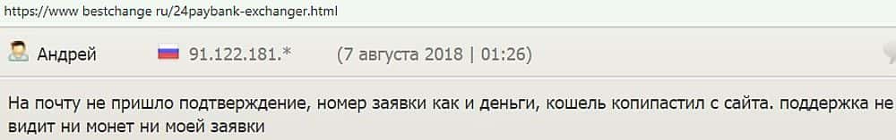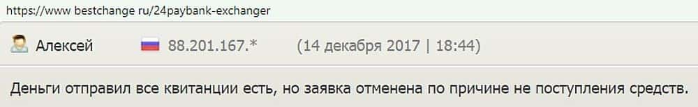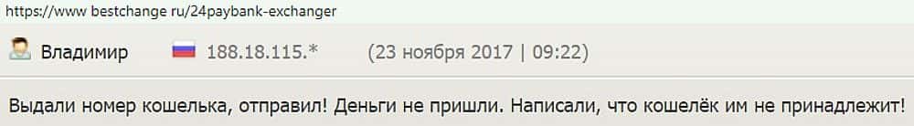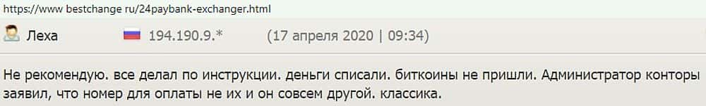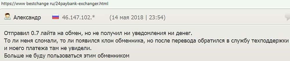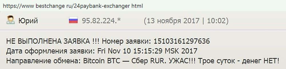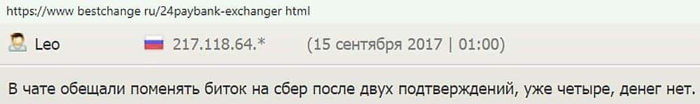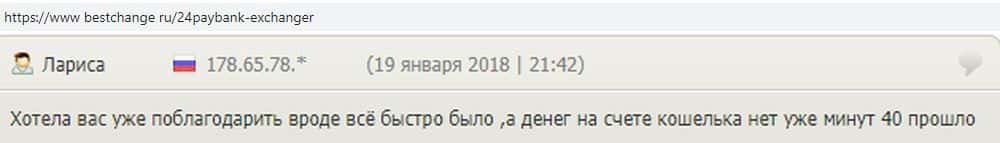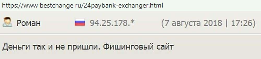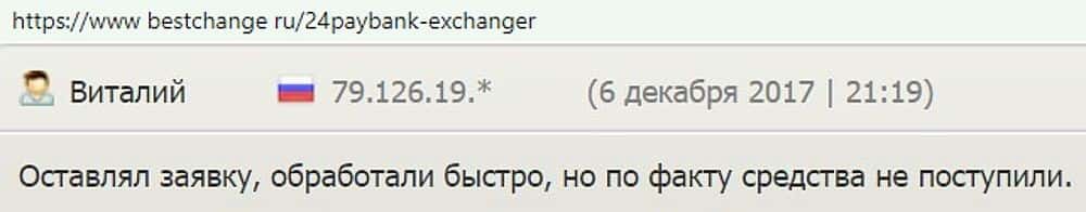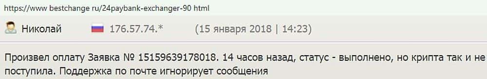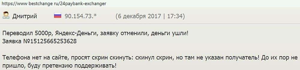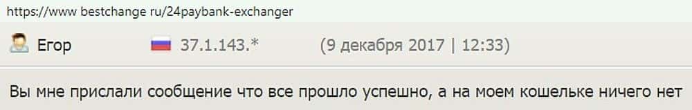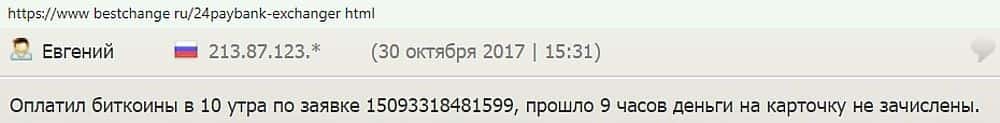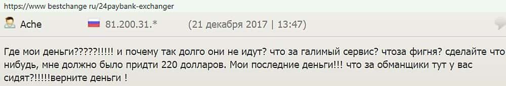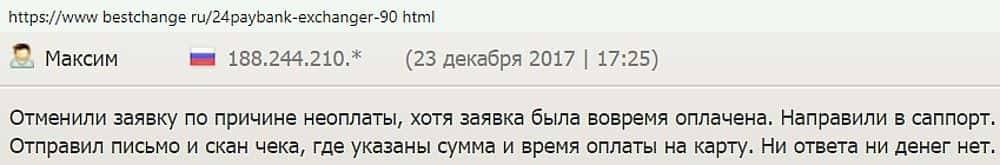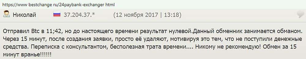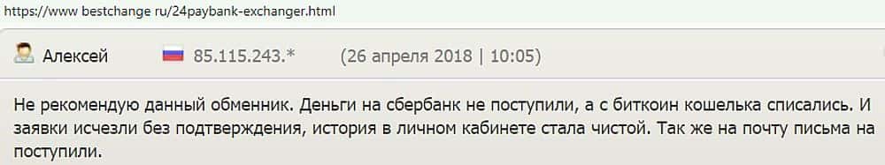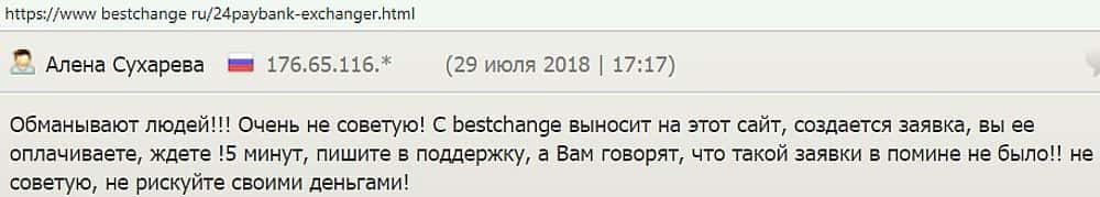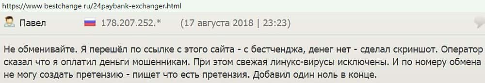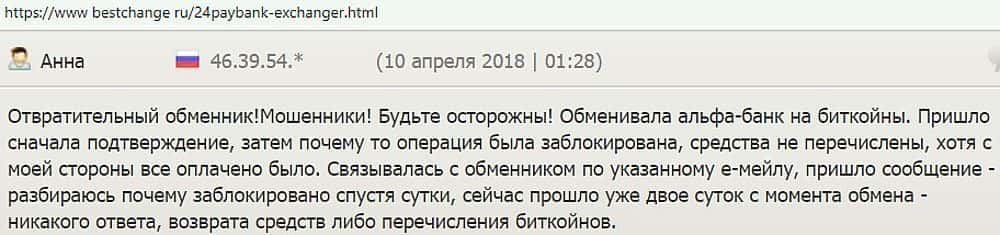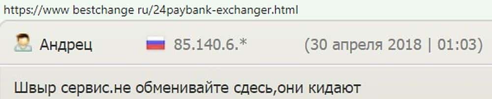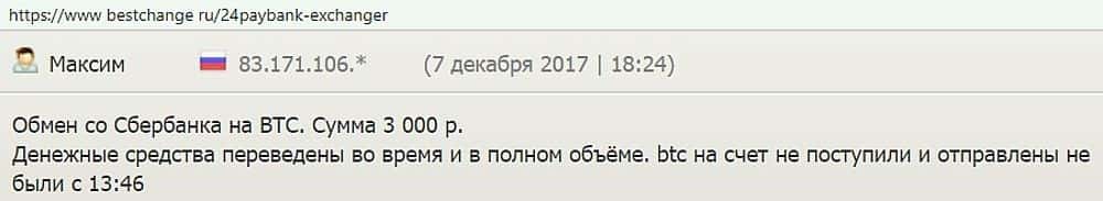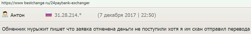 Жалоба на обменник 24PayBank Net от обманутого клиента