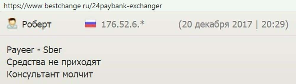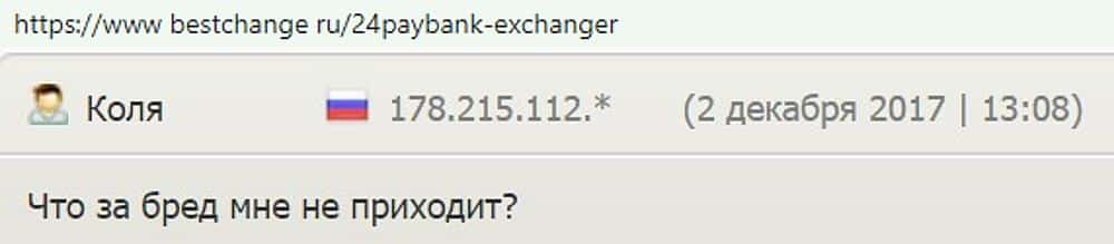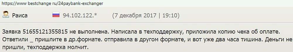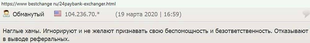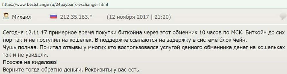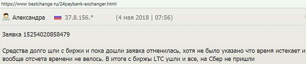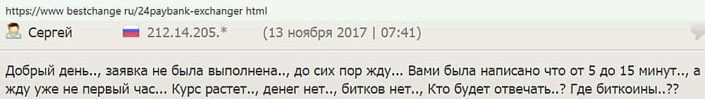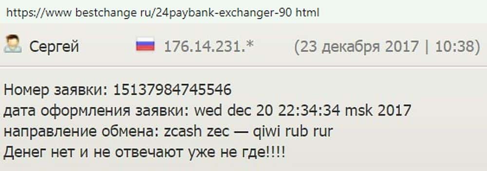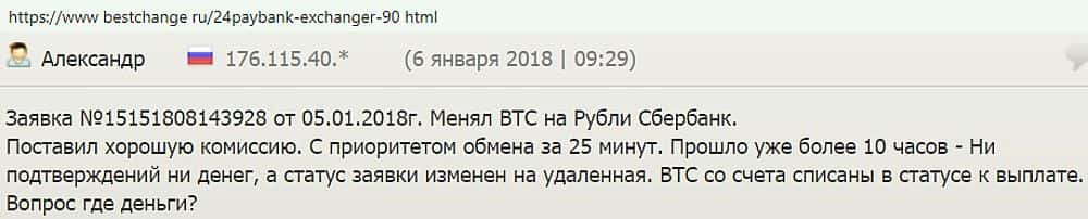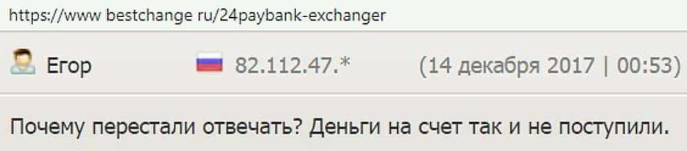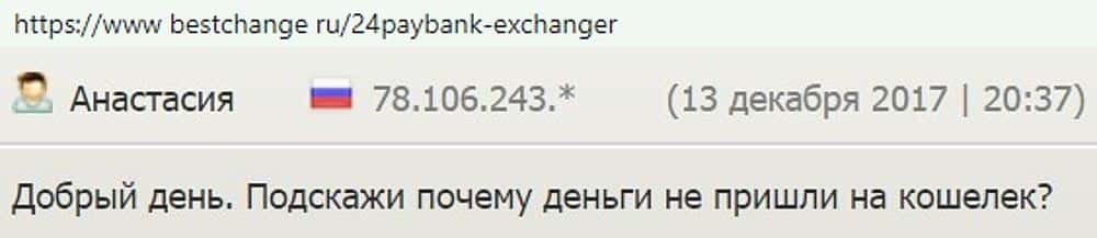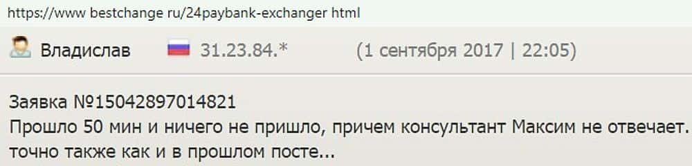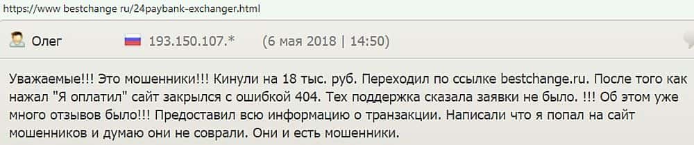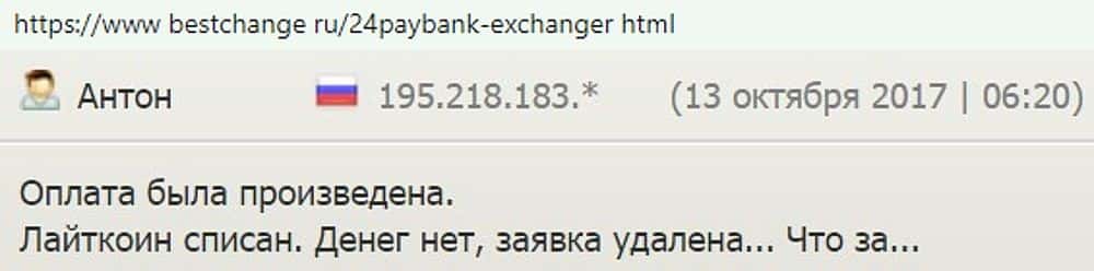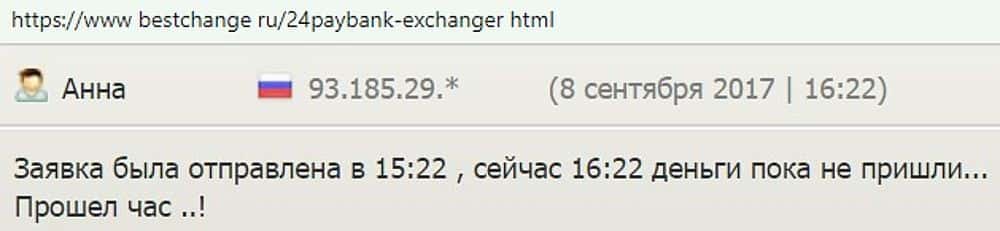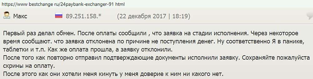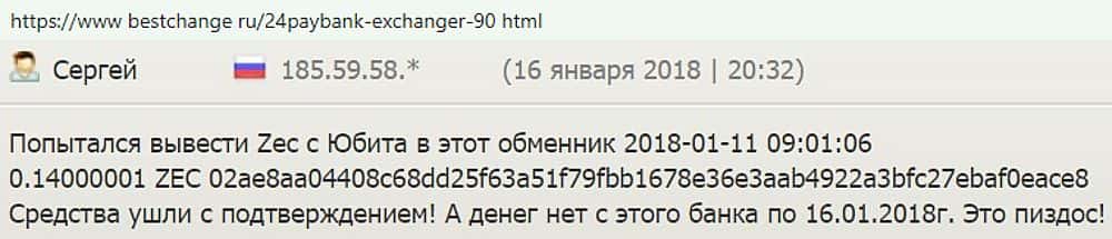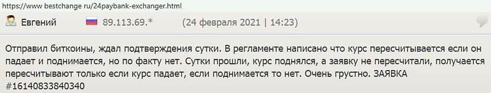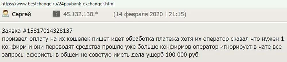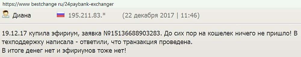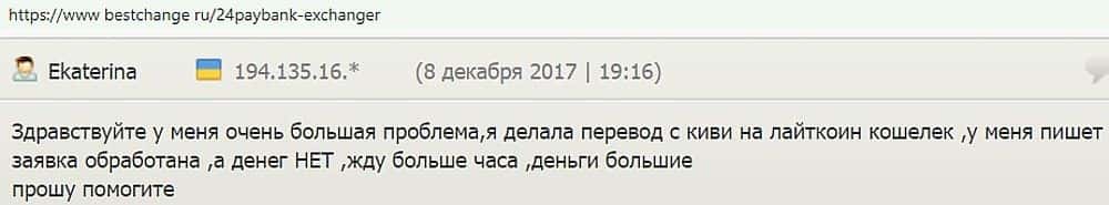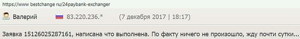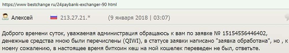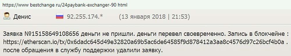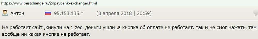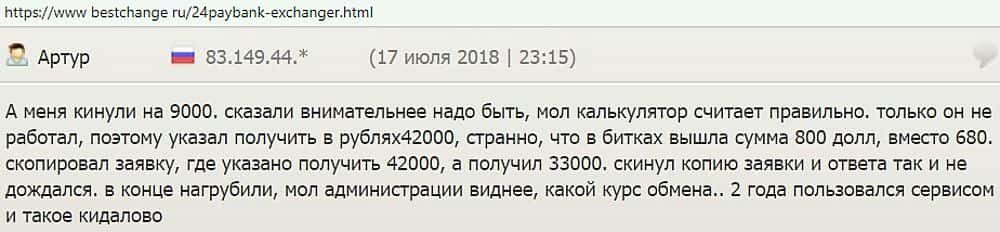 Жалоба на обменник 24PayBank Net от обманутого клиента