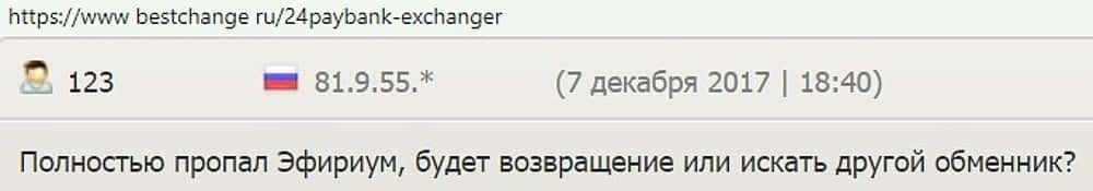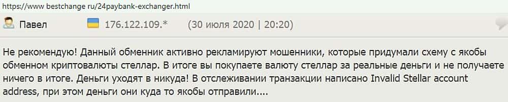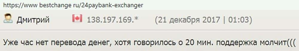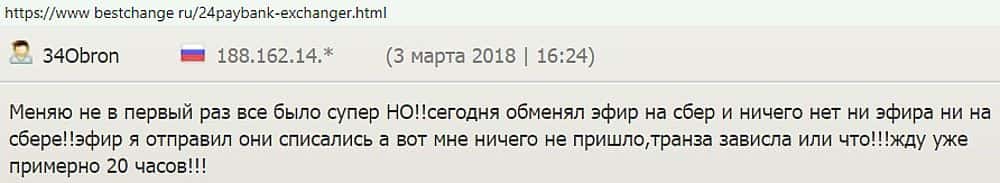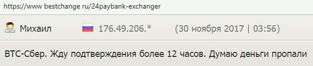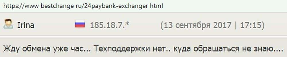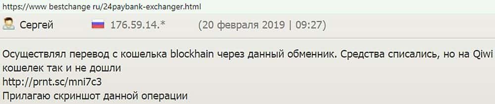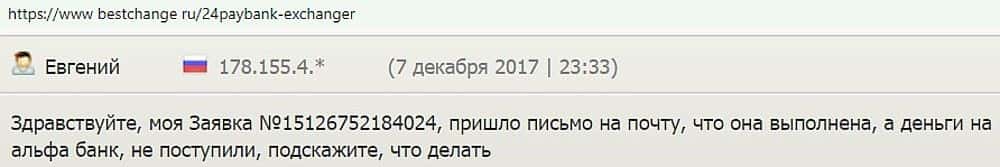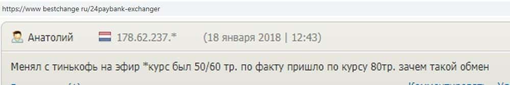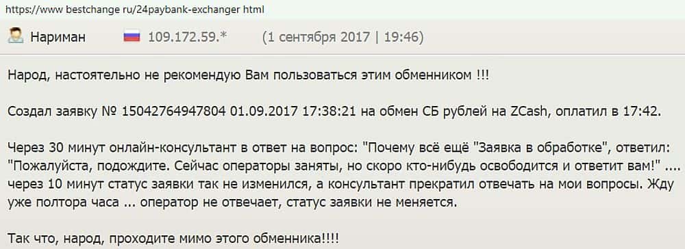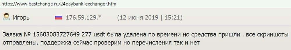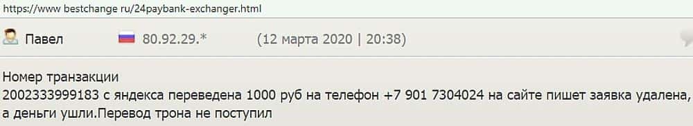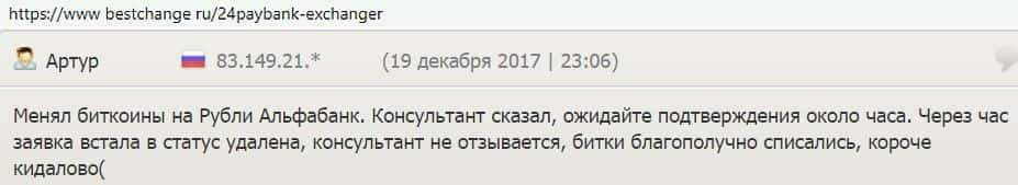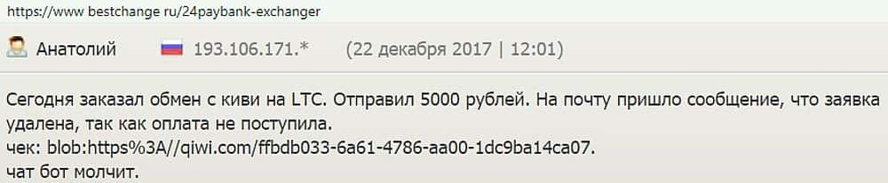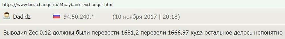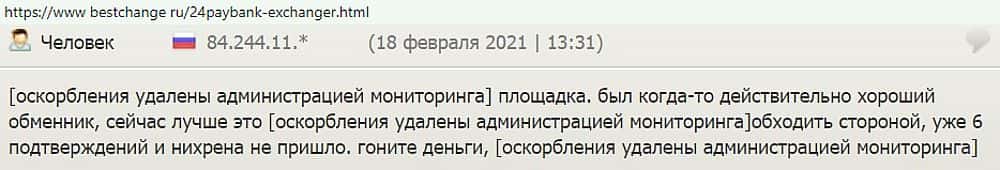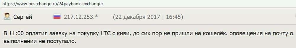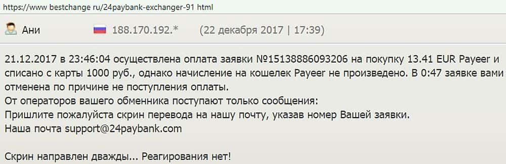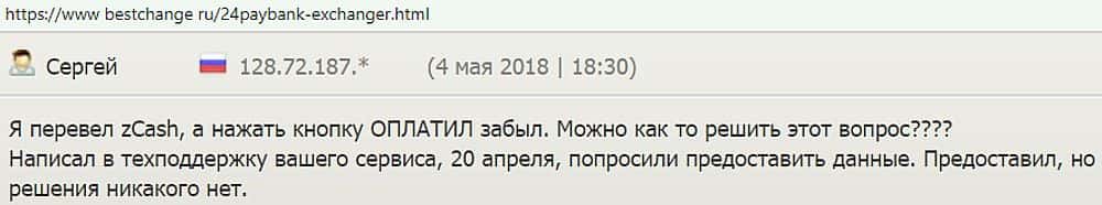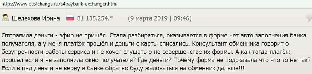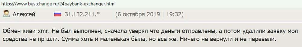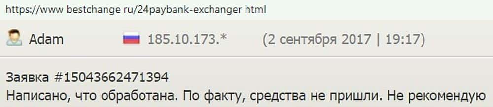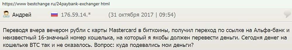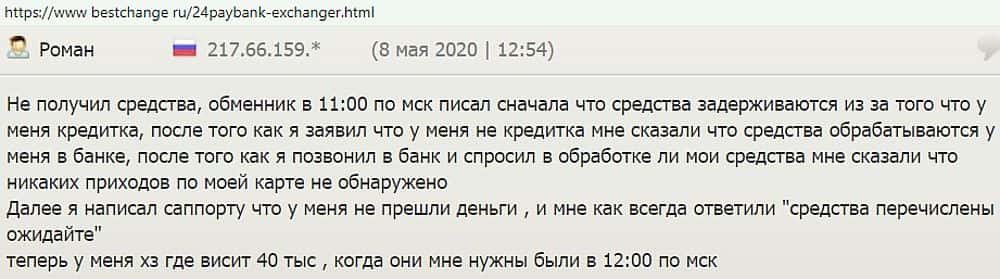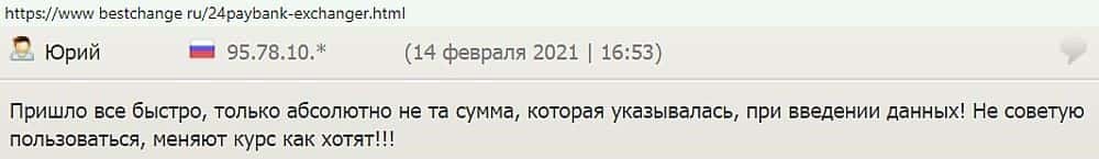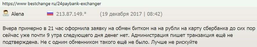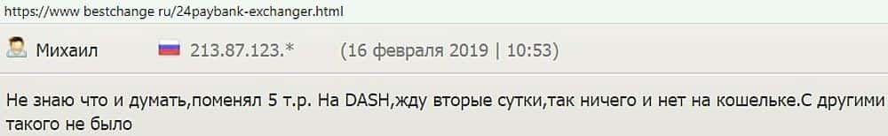 Жалоба на обменник 24PayBank Net от обманутого клиента