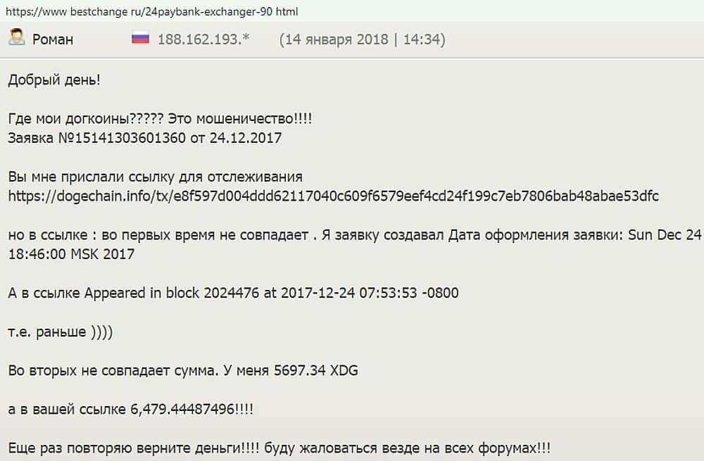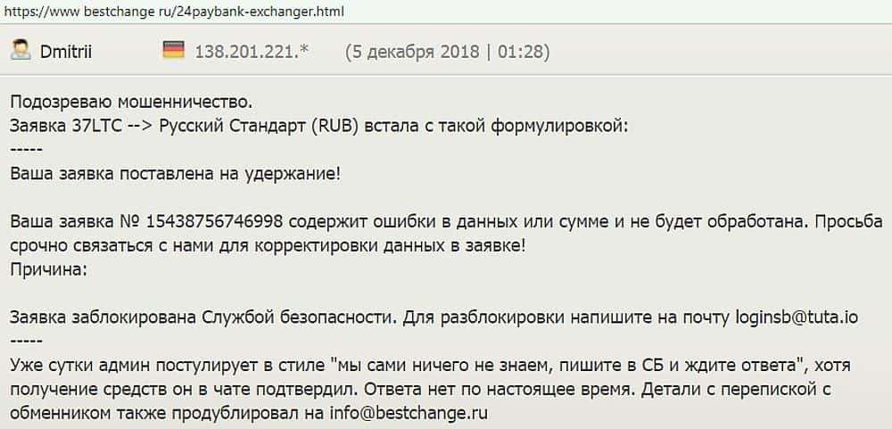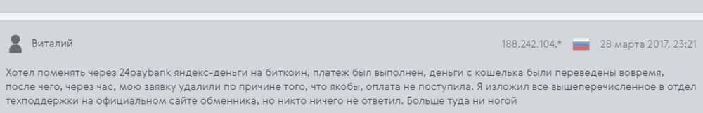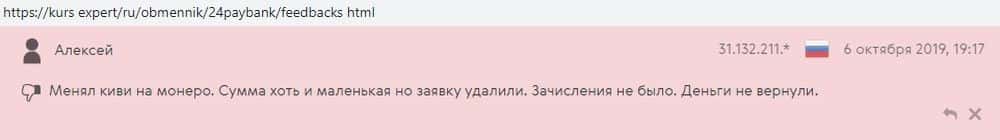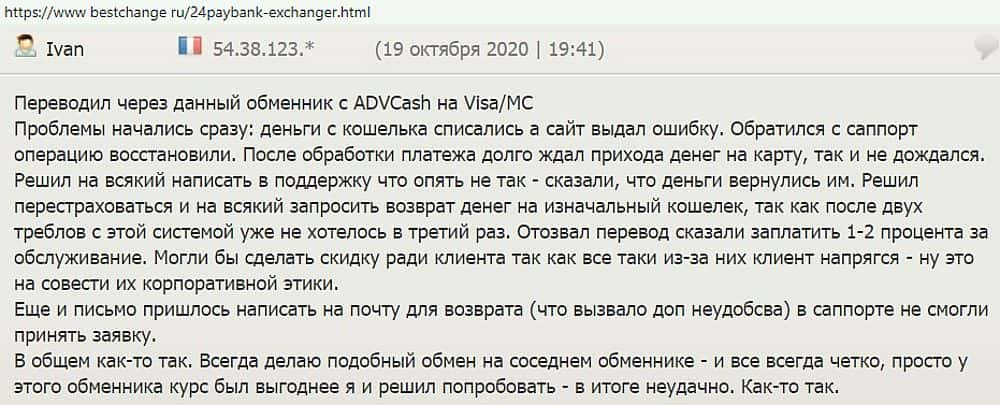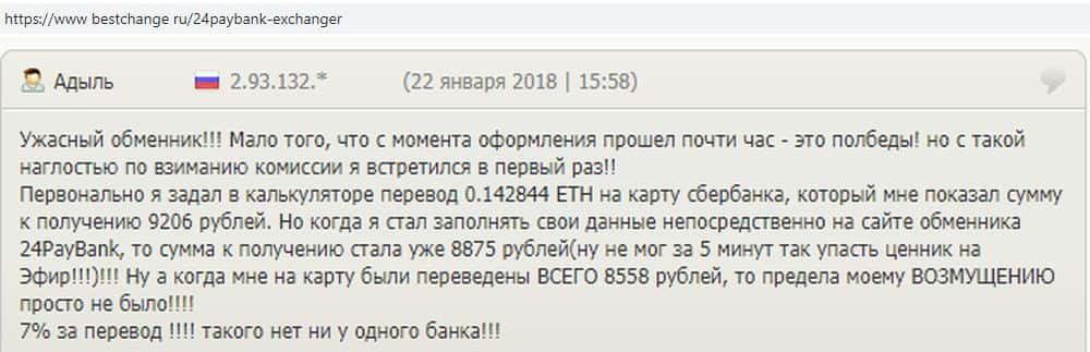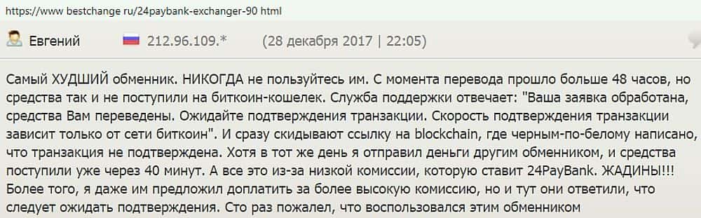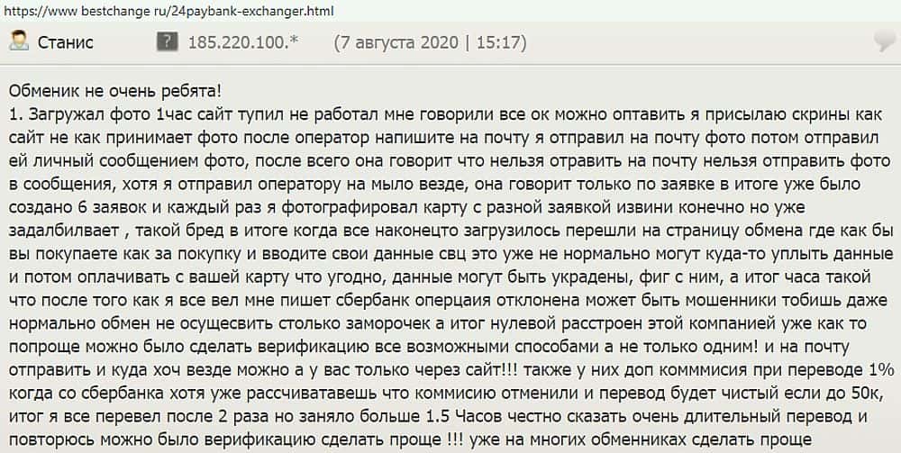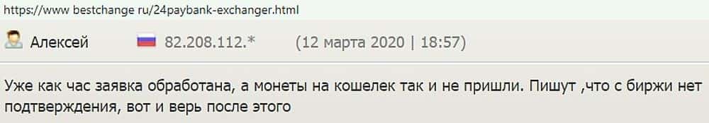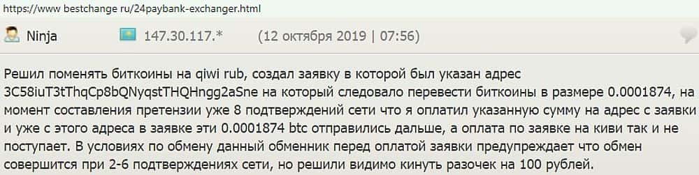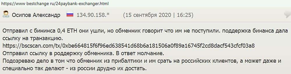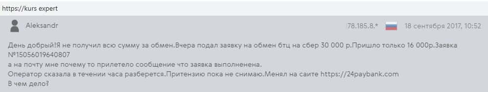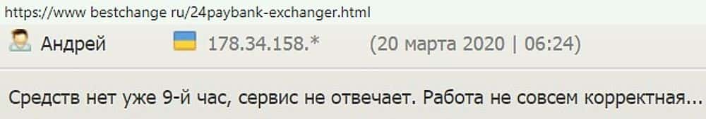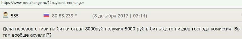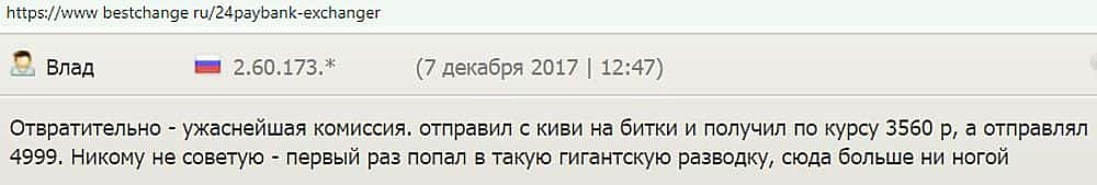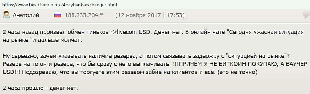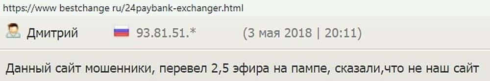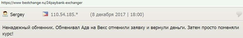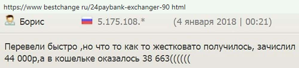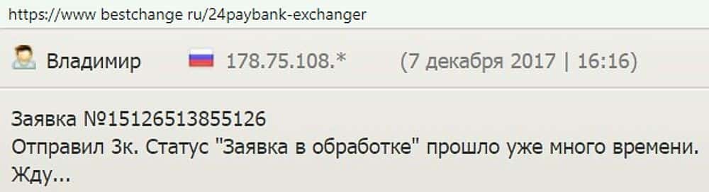 Жалоба на обменник 24PayBank Net от обманутого клиента